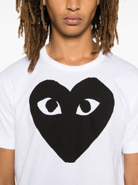 Cotton t-shirt [ SKU: 10197196310 ] The Cotton t-shirt by COMME DES GARCONS PLAY is a staple in contemporary fashion. Perfect for casual outings or laid-back office environments, this t-shirt can be effortlessly styled with tailored trousers or denim. Its minimalist design features a distinctive logo, making it a statement piece that elevates any ensemble. Ideal for both social gatherings and relaxed weekends, this versatile top seamlessly integrates into a modern wardrobe. Embrace a chic aesthetic with this essential item, which reflects a commitment to quality craftsmanship and timeless appeal. Reference AXT0701 Made in Japan