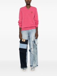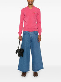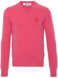 V-neck wool jumper Highlights - Rose pink - Wool - Knitted construction - Signature double-heart patch - Ribbed v-neck - Long sleeves - Ribbed cuffs and hem - When buying this unisex item, keep in mind that it is graded in standard men's sizing. Imported Composition Wool 100% SIZE & FIT Model measurements Height 5 ft 11 in(1.8 m) Bust/Chest 32.67 in(83 cm) Hips 36.22 in(92 cm) Waist 24.4 in(62 cm) Measurement CHEST 42 in(106.7 cm) LENGTH 27.99 in(71.1 cm) WAIST 37.99 in(96.5 cm) SLEEVE LENGTH 26.49 in(67.3 cm) Shoulder Width 16.49 in(41.9 cm) FittingInformation This unisex piece is designed for a relaxed fit whether you usually select women's or men's sizes The ribbed hem offers a close, comfortable fit Made with a midweight knit, this piece offers some stretch