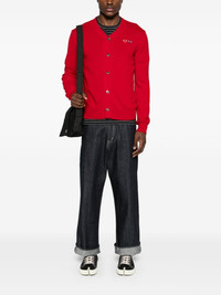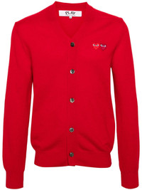 double-heart wool cardigan Highlights - Bright red - Wool - Knitted construction - Signature double-heart patch - Ribbed v-neck - Front button fastening - Long sleeves - Ribbed cuffs and hem - Straight hem - When buying this unisex item, keep in mind that it is graded in standard men's sizing. Imported Composition Wool 100% SIZE & FIT Model measurements Height 5 ft 9 in(1.75 m) Bust/Chest 34.64 in(88 cm) Hips 36.61 in(93 cm) Waist 26.37 in(67 cm) FittingInformation This piece is unisex – expect a slim fit if you usually select men's sizing; expect a looser fit if you usually select women's sizes The ribbed hem offers a close, comfortable fit Made with a midweight knit, this piece offers some stretch