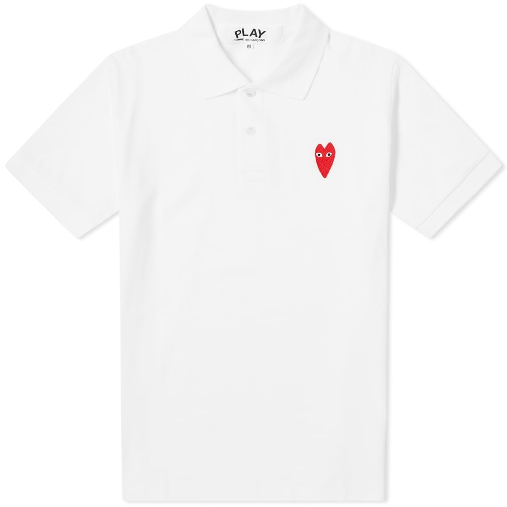 Delivered in a fresh white colourway, this Comme des Garçons PLAY polo takes after classic athletic styles. Crafted in a breathable cotton piqué construction, this slim-fitting silhouette comes complete with the label's iconic heart logo embroidered to the chest in a vibrant red hue; rounded off with a two button placket and comfortable ribbed trims. - 100% Cotton - Piqué Fabric - 2 Button Placket - Heart Appliqué - Ribbed Collar & Cuffs - Made in Japan