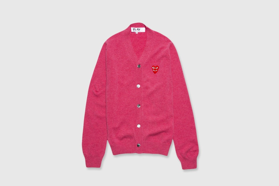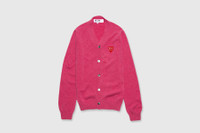 - AZ-N076-051-4PINK - Pink/Red - 100% Lamb Wool - Made in Japan - Embroidered red double hearts - Button closure - Ribbed cuffs and hems