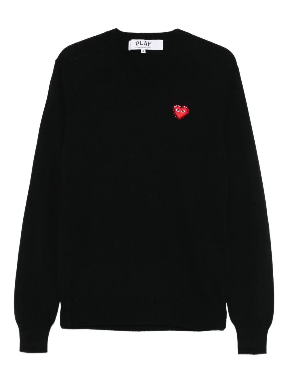 emblem rhinestone-heart sweater Highlights - Black - V-neck - Red heart emblem - Rhinestone embellishment - Long sleeves - Ribbed cuffs Imported Composition Wool 100% SIZE & FIT Model measurements Height 5 ft 11 in(1.8 m) Bust/Chest 31.49 in(80 cm) Hips 36.61 in(93 cm) Waist 24.4 in(62 cm) Washing instructions Read Manufacturer Guidelines