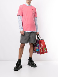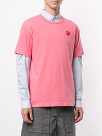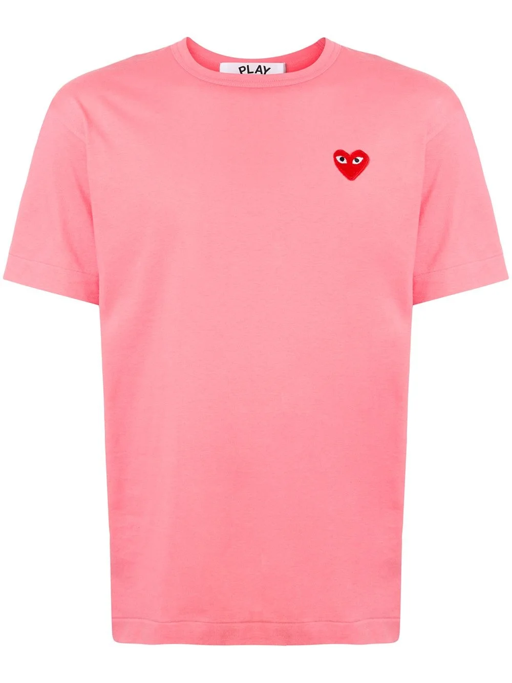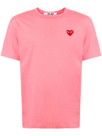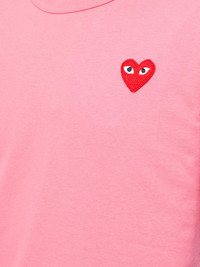 CORAL PINK COTTON EMBROIDERED HEART REGULAR FIT T-SHIRT FROM COMME DES GARCONS PLAY FEATURING A LOGO TO THE CHEST, A ROUND NECK, SHORT SLEEVES AND A STRAIGHT HEM.