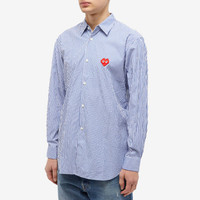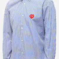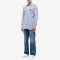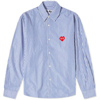 You’ll know it when you see it, the Filip Pagowski designed iconic heart motif from Comme des Garçons PLAY has made its way into our lives and it's here to stay. This time the bug eyed heart goes to the arcades, teaming up with French street artist Invader, for a pixelated iteration of the appliqué at the chest of this crisp striped cotton shirt. - 100% Cotton - Button Closure - Embroidered Branding - Made in Japan