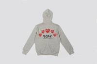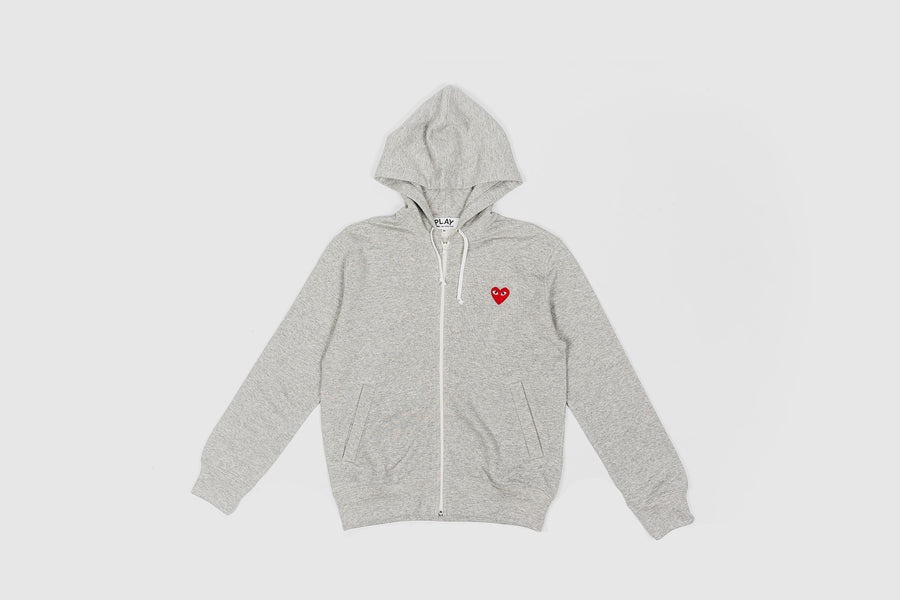 - AZT2500511GREY - Heather Grey/Red - 100% Cotton - Made in Japan - Drawstring hood - Zip closure - Heart Applique - 2 welt pockets - Screen-printed CDG Play branding