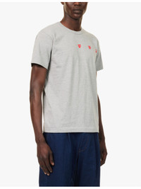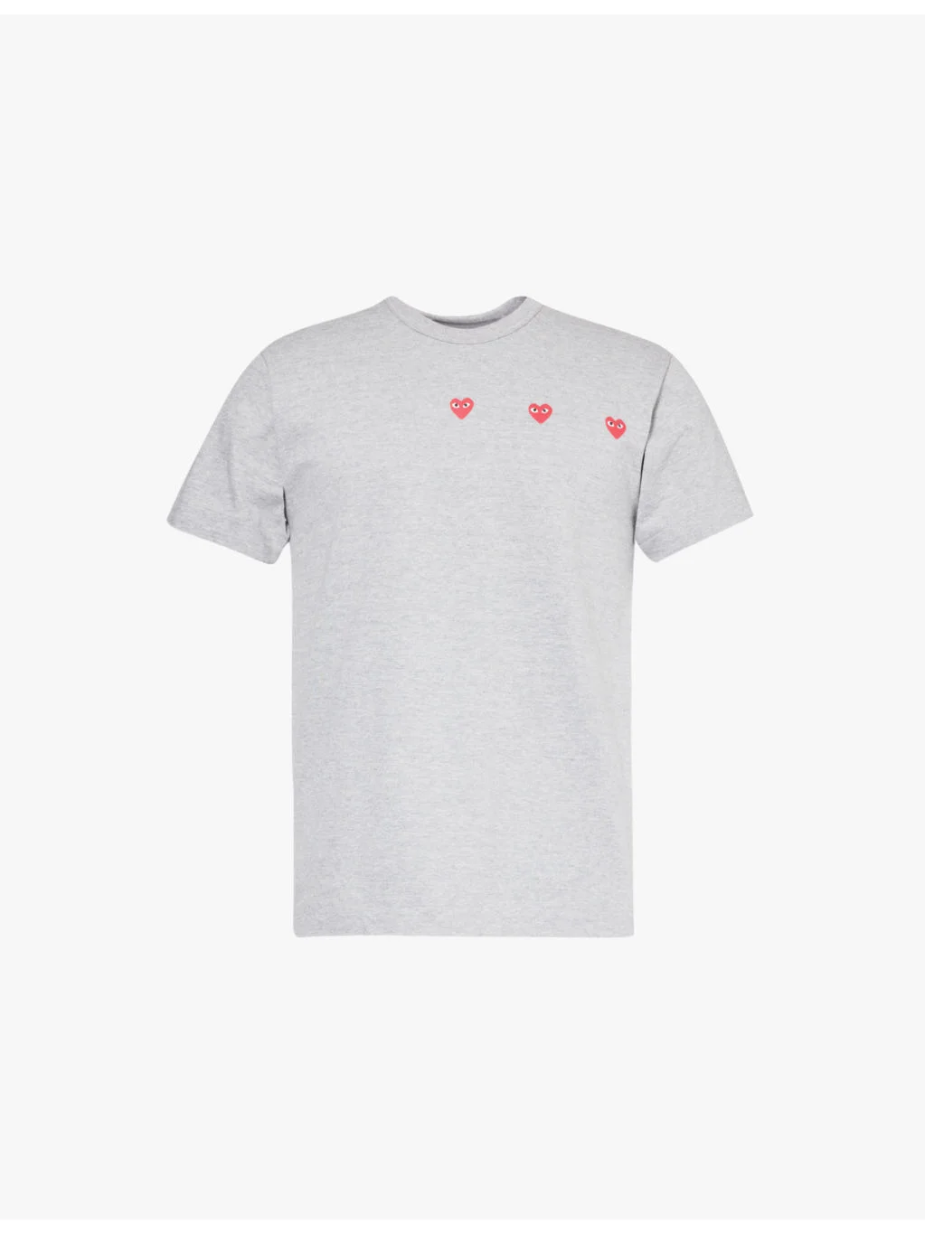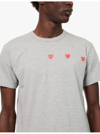 PRODUCT DETAILS - Comme des Garcons PLAY cotton-jersey T-shirt - 100% cotton - Pulls on - Regular fit, ribbed crew neck, short sleeves, hearts print at front - Hand wash cold - Made in Japan - Model is 6ft 2in/1.88m and wears a size medium - Lightweight, stretchy Ref: R04342280-S