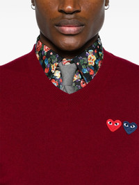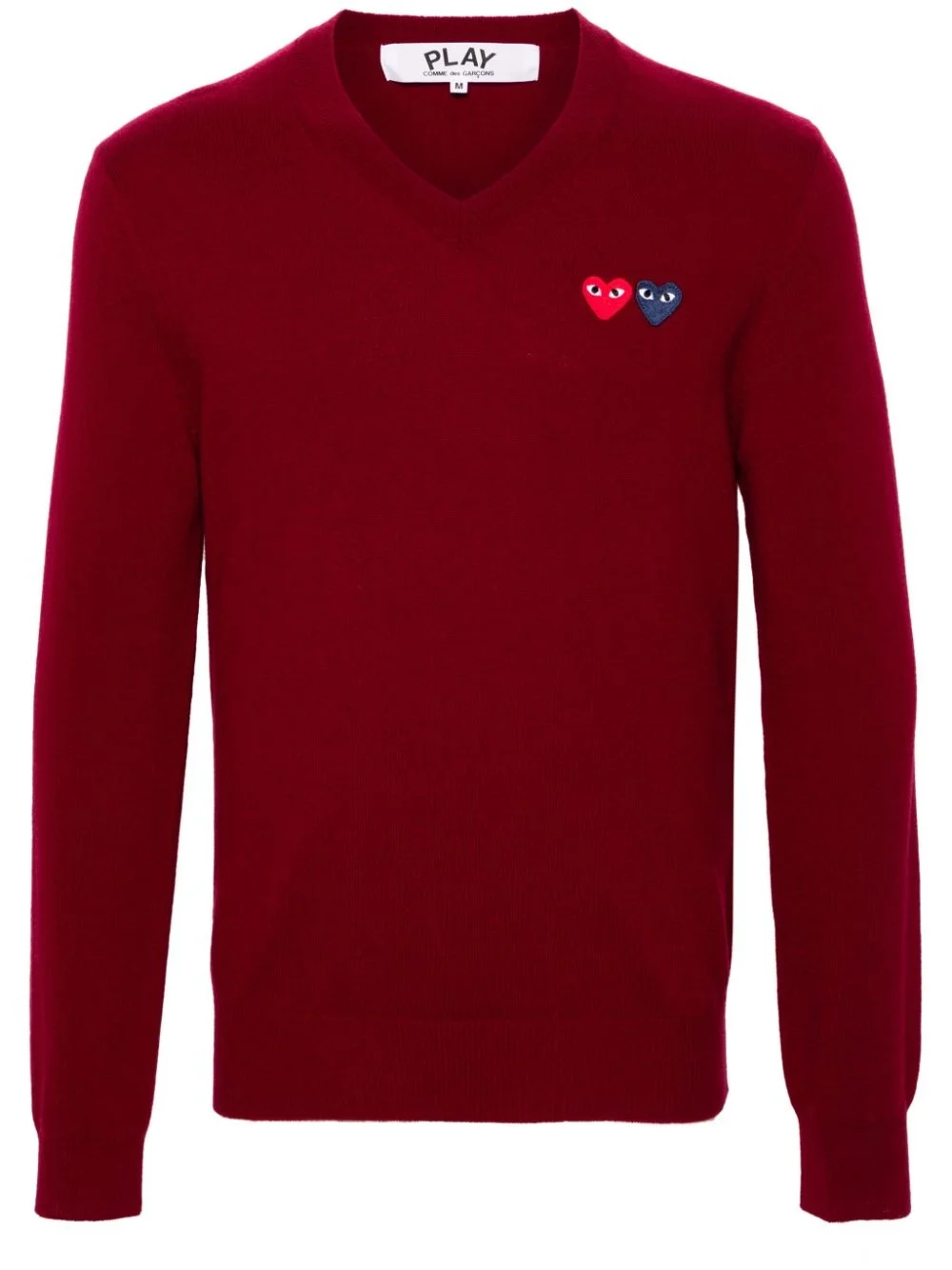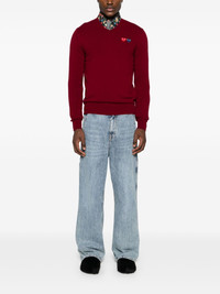 heart-patch wool jumper Highlights - Burgundy - Wool - Knitted construction - Signature double-heart patch - Ribbed v-neck - Long sleeves - Ribbed cuffs and hem - When buying this unisex item, keep in mind that it is graded in standard men's sizing. Imported Composition Wool 100% SIZE & FIT Model measurements Height 5 ft 9 in(1.75 m) Bust/Chest 34.64 in(88 cm) Hips 36.61 in(93 cm) Waist 26.37 in(67 cm) FittingInformation This piece is unisex – expect a slim fit if you usually select men's sizing; expect a looser fit if you usually select women's sizes The ribbed hem offers a close, comfortable fit Made with a midweight knit, this piece offers some stretch