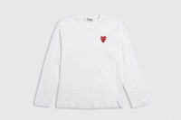 - AZ-T292-051-2WHT - White/Red - 100% Cotton - Made in Japan - Ribbed crewneck collar - Double red heart patch applique