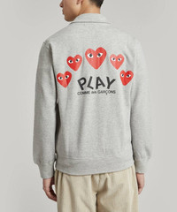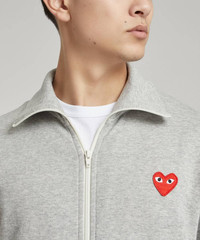 Editor's Notes A mark of in-the-know style for nearly two decades, Comme des Garçons PLAY’s instantly recognisable heart logo christens both the chest and rear of this cotton, zip-up sweatshirt. Comme des Garçons PLAY creates well-tailored wardrobe basics. The brand’s ubiquitous heart-with-eyes logo can be spotted peeping from the front and back of this statement piece. This grey, soft cotton sweatshirt has a front zip fastening, complete with a high-neck collar – pair with relaxed denim. Features Sweatshirt Cotton High-neck collar Zip-up Heart logo patch at chest and rear SIZE & FIT Model is 186cm/6’1”; Chest: 92cm; Waist: 71cm and wears size M Composition & Care 100% Cotton Machine wash at 30°C About Comme Des Garçons Play Instantly recognisable the world over, Comme des Garçons PLAY’s red heart-with-eyes logo was created by Polish artist Filip Pagowski. PLAY launched in 2002 and is designed by Comme des Garçons founder Rei Kawakubo. Snubbing traditional fashion seasons, the label produces playful, often logo-adorned ready-to-wear, alongside sought-after collaborations with other artists and creatives.