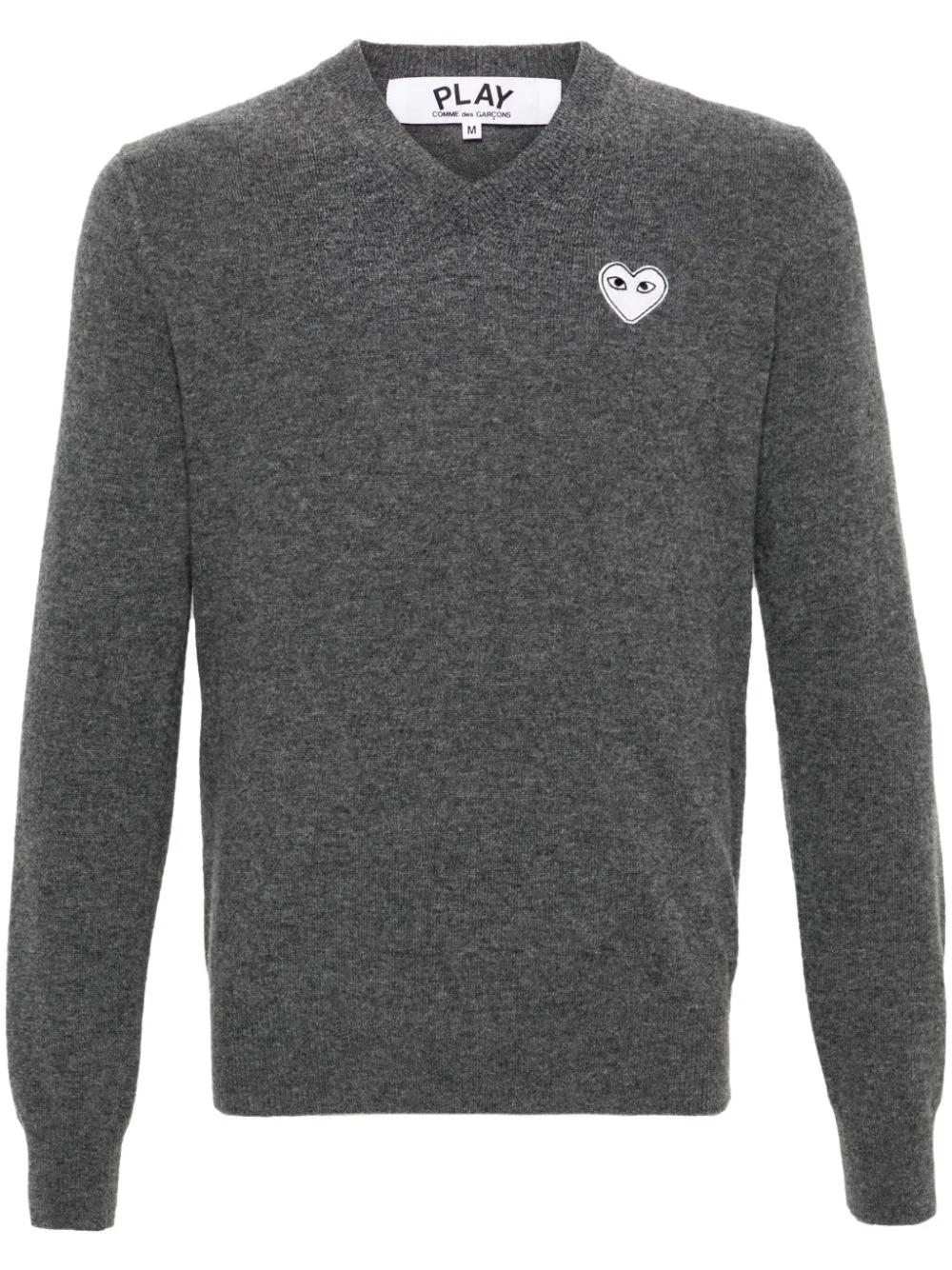 Heart-patch V-neck wool jumper Highlights - Medium grey - Wool - Knitted construction - Signature heart patch - V-neck - Long sleeves - Ribbed cuffs and hem - When buying this unisex item, keep in mind that it is graded in standard men's sizing. Imported Composition Wool 100% SIZE & FIT Model measurements Height 5 ft 10 in(1.77 m) Bust/Chest 33.07 in(84 cm) Hips 37 in(94 cm) Waist 24.8 in(63 cm) FittingInformation This unisex piece is designed for a relaxed fit whether you usually select women's or men's sizes Made with a midweight knit, this piece offers some stretch Washing instructions Dry Clean Only