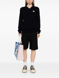 heart-patch sweater Highlights - Navy blue - Wool - Knitted construction - Signature heart patch - Ribbed v-neck - Long sleeves - Ribbed cuffs and hem - When buying this unisex item, keep in mind that it is graded in standard men's sizing. Imported Composition Wool 100% SIZE & FIT Model measurements Height 5 ft 9 in(1.75 m) Bust/Chest 30.7 in(78 cm) Hips 35.03 in(89 cm) Waist 23.62 in(60 cm) FittingInformation This unisex piece is designed for a relaxed fit whether you usually select women's or men's sizes The ribbed hem offers a close, comfortable fit Made with a midweight knit, this piece offers some stretch Washing instructions Dry Clean Only
