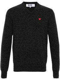 heart-patch wool jumper Highlights - Charcoal grey - Wool - Fine knit - Signature heart patch - Ribbed trim - V-neck - Long sleeves - Straight hem - When buying this unisex item, keep in mind that it is graded in standard men's sizing. Imported Composition Wool 100% SIZE & FIT Model measurements Height 5 ft 10 in(1.77 m) Bust/Chest 33.07 in(84 cm) Hips 37 in(94 cm) Waist 24.8 in(63 cm) FittingInformation This unisex piece is designed for a relaxed fit whether you usually select women's or men's sizes Made with a midweight knit, this piece offers some stretch