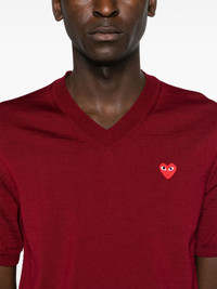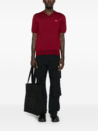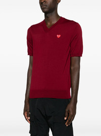 heart-patch wool jumper Highlights - Burgundy - Wool - Fine knit - Signature heart patch - Ribbed v-neck - Short sleeves - Ribbed cuffs and hem - Straight hem - When buying this unisex item, keep in mind that it is graded in standard men's sizing. Imported Composition Wool 100% SIZE & FIT Model measurements Height 5 ft 10 in(1.77 m) Bust/Chest 33.07 in(84 cm) Hips 37 in(94 cm) Waist 24.8 in(63 cm) FittingInformation This unisex piece is designed for a relaxed fit whether you usually select women's or men's sizes Made with a midweight knit, this piece offers some stretch