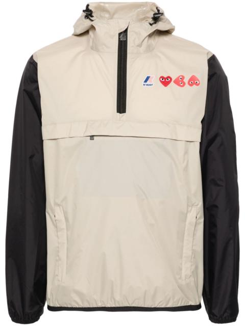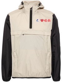 x K-Way Heart-patch lightweight jacket Highlights - Sand beige/black - Ripstop texture - Lightweight - Logo print at the chest - Logo patch at the chest - Drawstring hood - Short front zip fastening - Long sleeves - Elasticated cuffs - Drawstring hem - Front zip-fastening pocket - Two side zip-fastening pockets - When buying this unisex item, keep in mind that it is graded in standard men's sizing. Imported Composition Polyamide 100% Washing instructions Machine Wash