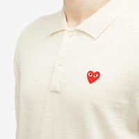 Embrace high quality with a twist of fun, with the Comme des Garçons Play Knit Polo. A wardrobe staple, this fine knit wool polo features ribbed trims and a 2 button placket. Branding is minimal but iconic - the CdG Heart Eyes is embroidered on the chest. - 100% Wool - Polo Collar - 2 Button Placket - Ribbed Trims - Dry Clean Only - Embroidered Heart Motif