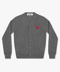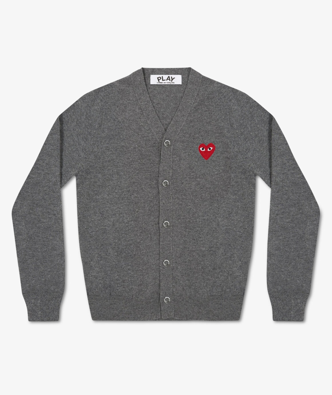 A classic V-neck cardigan featuring the iconic embroidered heart logo on the chest. Crafted from 100% wool for a refined and comfortable fit. DETAILS & FEATURES — Material: 100% wool — Features: V-neck design, embroidered heart logo — Style-No.: AX-N008-051 ABOUT THE BRAND Launched in 2012 as a branch of Comme des Garcons, CDG Play is distinguished by its iconic heart-shaped logo and has since developed a devoted following.