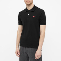 Placing the iconic bug-eyed heart onto an athletic staple, Comme des Garçons PLAY takes the polo shirt away from the court and into the city. It’s cut from traditional cotton piqué and uses a sleek black base to let the striking red motif stand proud on the chest. - 100% Cotton - Piqué Fabric - 2 Button Placket - Appliqué Branding - Ribbed Trims - Made in Japan