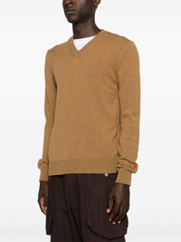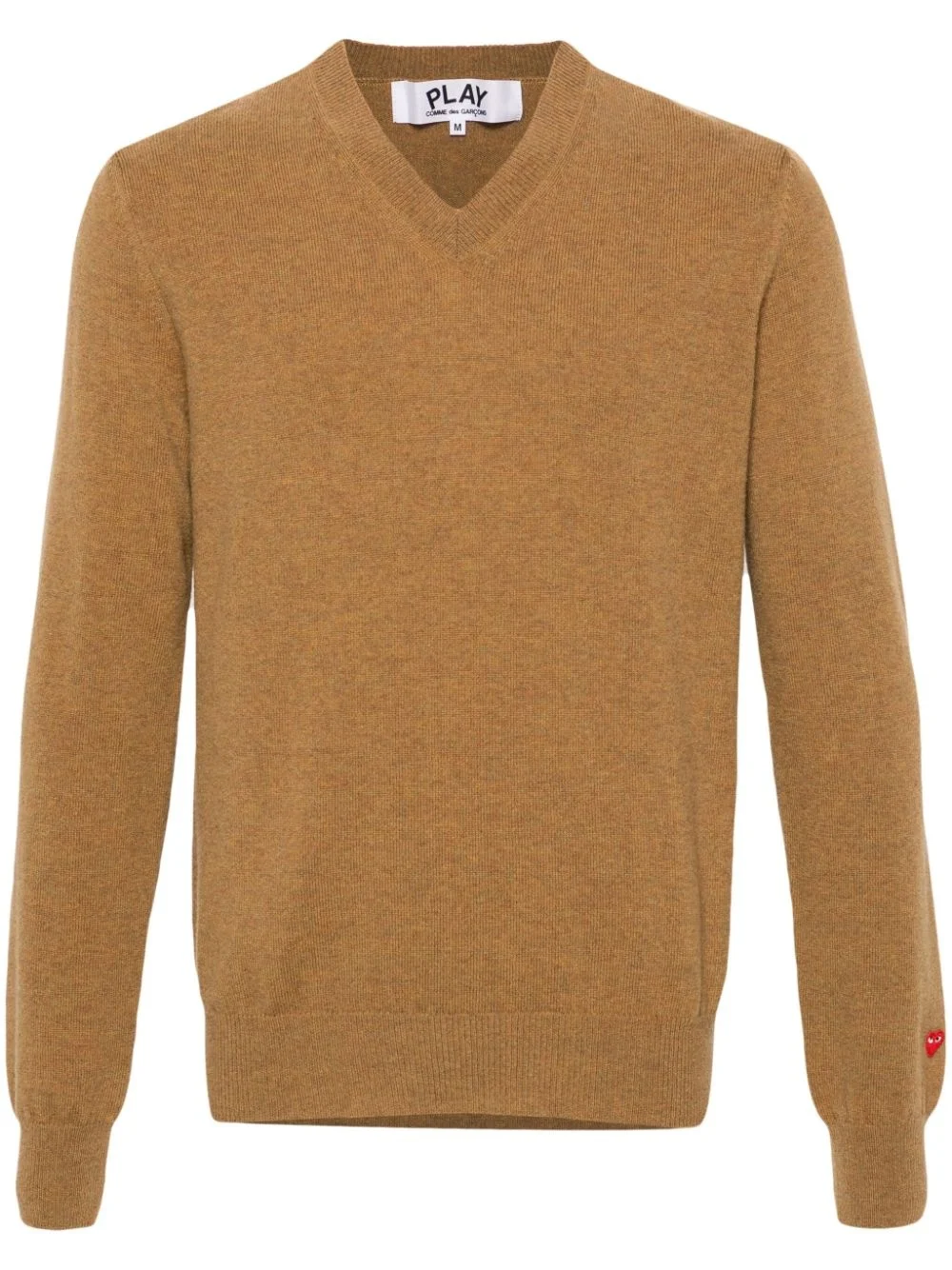 heart-patch wool jumper Highlights - Camel brown - Wool - Knitted construction - Signature heart patch - Ribbed v-neck - Long sleeves - Ribbed cuffs and hem - When buying this unisex item, keep in mind that it is graded in standard men's sizing. Imported Composition Wool 100% SIZE & FIT Model measurements Height 5 ft 10 in(1.77 m) Bust/Chest 33.07 in(84 cm) Hips 37 in(94 cm) Waist 24.8 in(63 cm) Measurement CHEST 37.79 in(96 cm) LENGTH 25.19 in(64 cm) SLEEVE LENGTH 25.59 in(65 cm) Shoulder Width 14.96 in(38 cm) FittingInformation This unisex piece is designed for a relaxed fit whether you usually select women's or men's sizes Made with a midweight knit, this piece offers some stretch