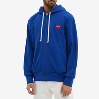 Sure to add a joyful touch to your seasonal wardrobe, Comme des Garçons PLAY's hoody is coloured in bright blue and detailed with the iconic heart logo on the chest. It’s made in Japan from cosy fabric and equipped with a spacious hood for extra warmth. - 100% Polyester - Drawstring Hood - Zip Closure - 2 Side Pockets - Appliqué Branding - Ribbed Trims - Made in Japan