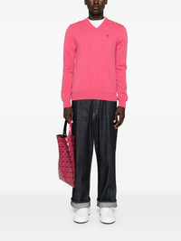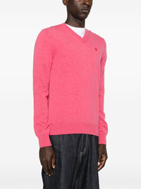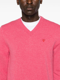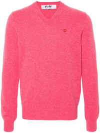 heart-patch wool jumper Highlights - Pink - Wool - Fine knit - Signature heart patch - Ribbed trim - V-neck - Long sleeves - Straight hem - When buying this unisex item, keep in mind that it is graded in standard men's sizing. Imported Composition Wool 100% SIZE & FIT Model measurements Height 5 ft 10 in(1.77 m) Bust/Chest 33.07 in(84 cm) Hips 37 in(94 cm) Waist 24.8 in(63 cm) FittingInformation This unisex piece is designed for a relaxed fit whether you usually select women's or men's sizes Made with a midweight knit, this piece offers some stretch