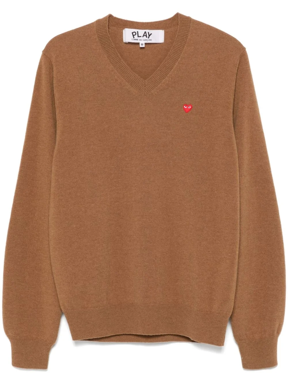 heart-patch jumper Highlights - Light brown - Wool - Fine knit - Ribbed v-neck - Long sleeves - Ribbed cuffs - Signature heart patch - Ribbed hem - When buying this unisex item, keep in mind that it is graded in standard men's sizing. Imported Composition Wool 100% SIZE & FIT Model measurements Height 5 ft 11 in(1.8 m) Bust/Chest 32.67 in(83 cm) Hips 36.22 in(92 cm) Waist 24.4 in(62 cm) FittingInformation This piece is unisex – expect a slim fit if you usually select men's sizing; expect a looser fit if you usually select women's sizes The ribbed hem offers a close, comfortable fit Made with a midweight knit, this piece offers some stretch