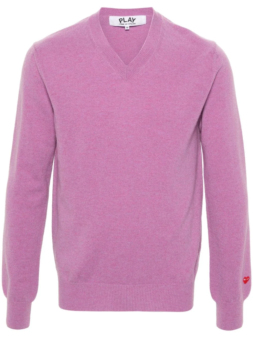 logo-applique wool jumper Highlights - Lilac purple - Wool - Fine knit - Ribbed-knit edge - Applique logo - V-neck - Long sleeves - Straight hem Imported Composition Wool 100% SIZE & FIT Model measurements Height 6 ft 2 in(1.87 m) Bust/Chest 38.18 in(97 cm) Hips 36.61 in(93 cm) Waist 29.13 in(74 cm) Measurement CHEST 37 in(94 cm) LENGTH 24.01 in(61 cm) SLEEVE LENGTH 24.8 in(63 cm) Shoulder Width 14.96 in(38 cm) FittingInformation Designed for a relaxed fit, this piece allows for comfort and movement when worn Made with a midweight knit, this piece offers some stretch This piece fits true to size – take your usual size