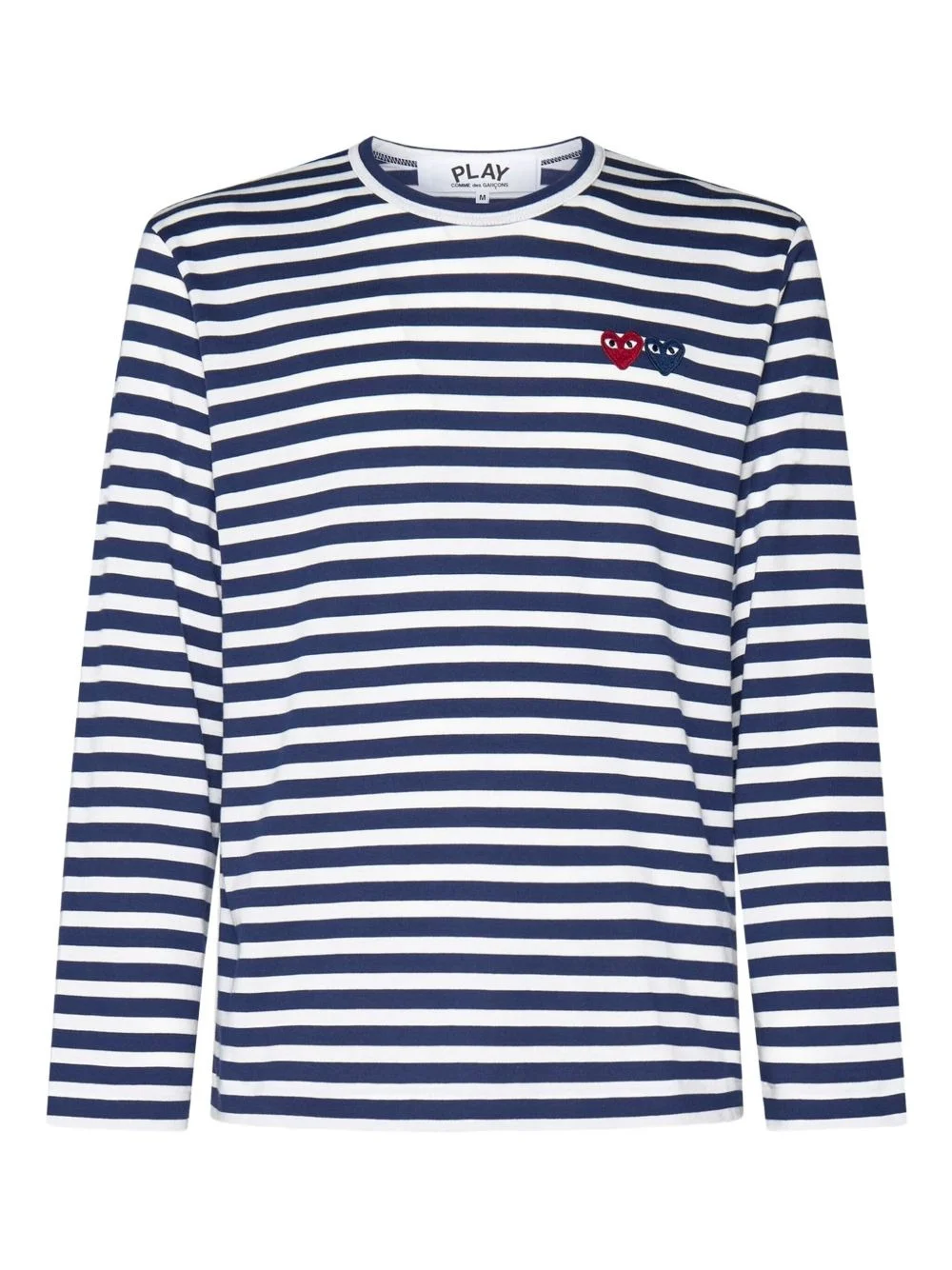 heart-patch striped cotton T-shirt Highlights - Navy blue/white - Cotton - Jersey texture - Horizontal stripe pattern - Crew neck - Long sleeves - Signature heart patch - Straight hem - When buying this unisex item, keep in mind that it is graded in standard men's sizing. Imported Composition Cotton 100% SIZE & FIT Measurement CHEST 35.43 in(90 cm) SLEEVE LENGTH 23.22 in(59 cm) LENGTH 25.59 in(65 cm) Shoulder Width 16.53 in(42 cm)