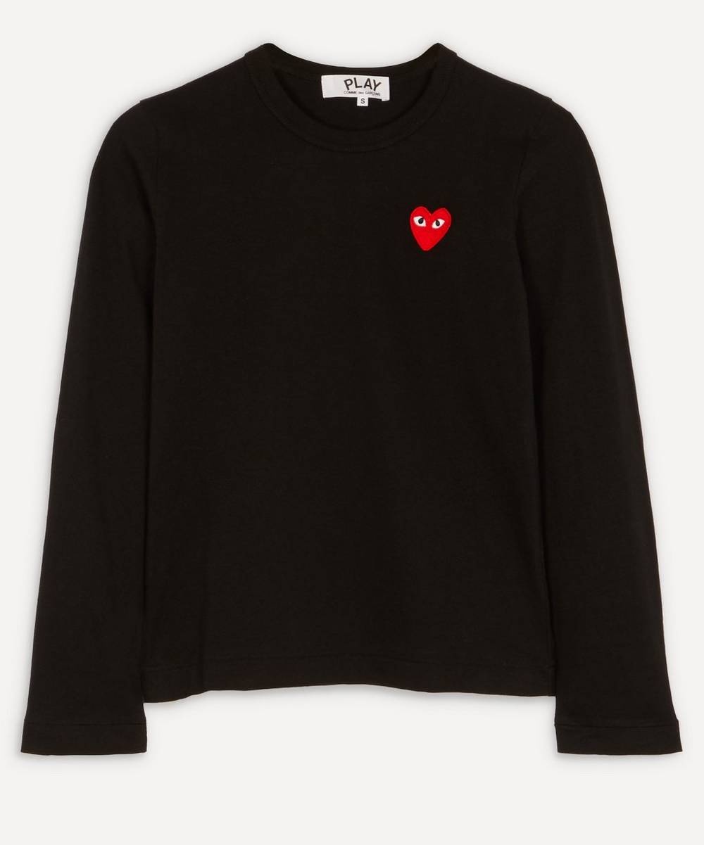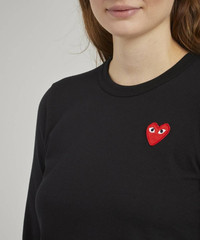 Editor's Notes Comme des Garçons PLAY’s instantly recognisable, heart logo is printed at the chest of this cotton t-shirt . Comme des Garçons PLAY creates well-tailored wardrobe basics – often the brand’s ubiquitous heart-with-eyes logo patch can be spotted peeping from the piece. This long-sleeve t-shirt is cut from cotton in a crew-neck style. The heart logo appears at the chest - pair with rolled-up chinos and white sneakers. Features Long-sleeve t-shirt Crew-neck Heart logo at chest Relaxed fit SIZE & FIT Model is 175cm/5’9”; Chest:81cm; Waist: 61cm; Hip: 89cm and wears size S Composition & Care 100% Cotton Hand wash or dry clean only About Comme Des Garçons Play Instantly recognisable the world over, Comme des Garçons PLAY’s red heart-with-eyes logo was created by Polish artist Filip Pagowski. PLAY launched in 2002 and is designed by Comme des Garçons founder Rei Kawakubo. Snubbing traditional fashion seasons, the label produces playful, often logo-adorned ready-to-wear, alongside sought-after collaborations with other artists and creatives.