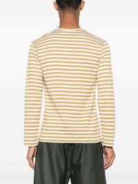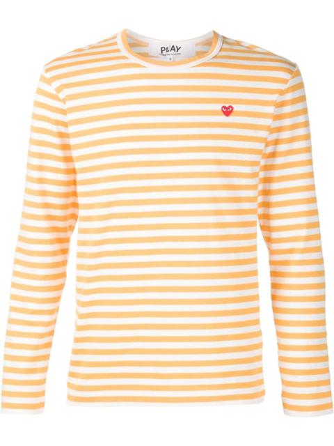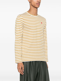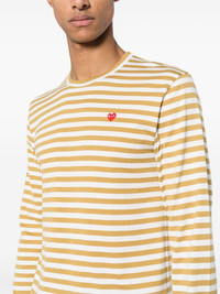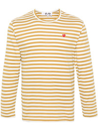 mini heart striped T-shirt White and dark yellow cotton mini heart striped T-shirt from Comme Des Garcons Play. Imported Composition Cotton 100% SIZE & FIT Model measurements Height 6 ft 2 in(1.87 m) Bust/Chest 38.18 in(97 cm) Hips 36.61 in(93 cm) Waist 29.13 in(74 cm) FittingInformation Designed for a slim fit, offering a comfortable fit that sits just away from the body Made from a midweight non-stretch fabric, this piece offers minimal elasticity when worn This piece fits true to size – take your usual size Washing instructions Machine Wash