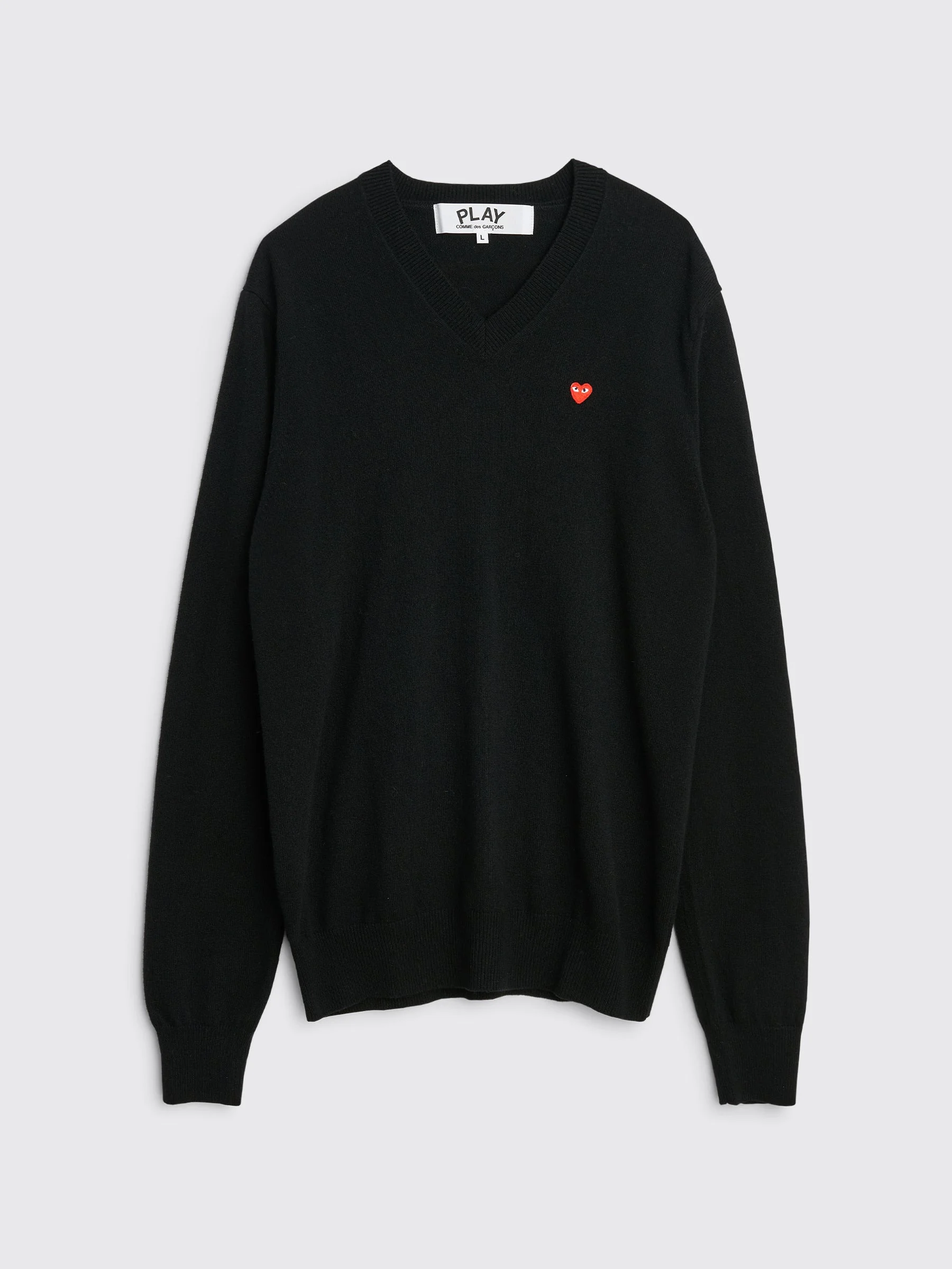 COMME DES GARÇONS PLAY MINI HEART V-NECK KNIT SWEATER BLACK