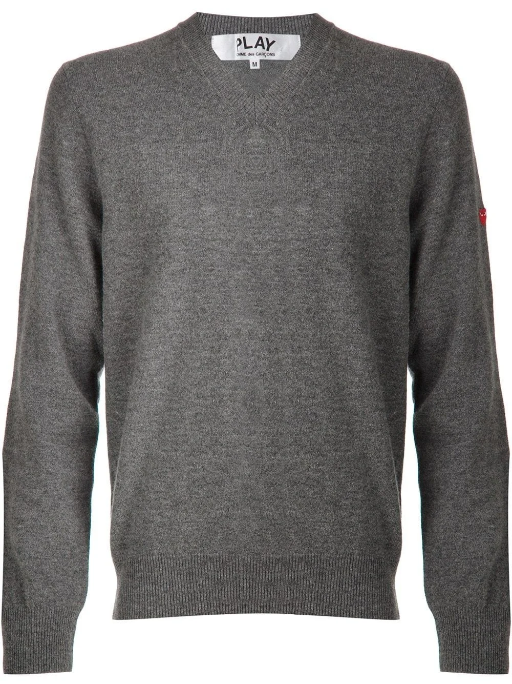 mini heart v-neck sweater Grey wool mini heart v-neck sweater from Comme Des Garcons Play featuring long sleeves and a ribbed hem and cuffs. Imported Composition Wool 100% SIZE & FIT Model measurements Height 6 ft 1 in(1.85 m) Bust/Chest 33.46 in(85 cm) Hips 36.61 in(93 cm) Waist 29.92 in(76 cm) Washing instructions Dry Clean Only