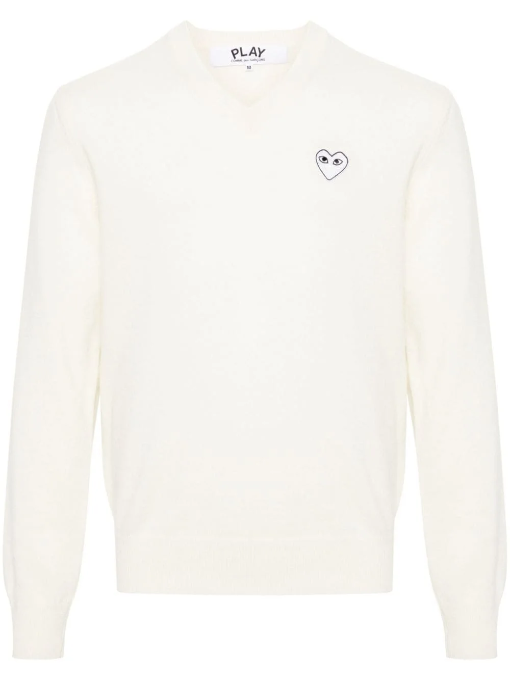 heart-patch wool jumper Highlights - White - Wool - Knitted construction - Signature heart patch - Ribbed v-neck - Long sleeves - Ribbed cuffs and hem - When buying this unisex item, keep in mind that it is graded in standard men's sizing. Imported Composition Wool 100% SIZE & FIT Model measurements Height 5 ft 10 in(1.77 m) Bust/Chest 33.07 in(84 cm) Hips 37 in(94 cm) Waist 24.8 in(63 cm) Measurement LENGTH 25.19 in(64 cm) SLEEVE LENGTH 24.8 in(63 cm) Shoulder Width 15.35 in(39 cm) FittingInformation This unisex piece is designed for a relaxed fit whether you usually select women's or men's sizes Made with a midweight knit, this piece offers some stretch
