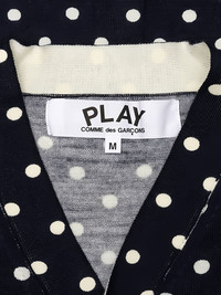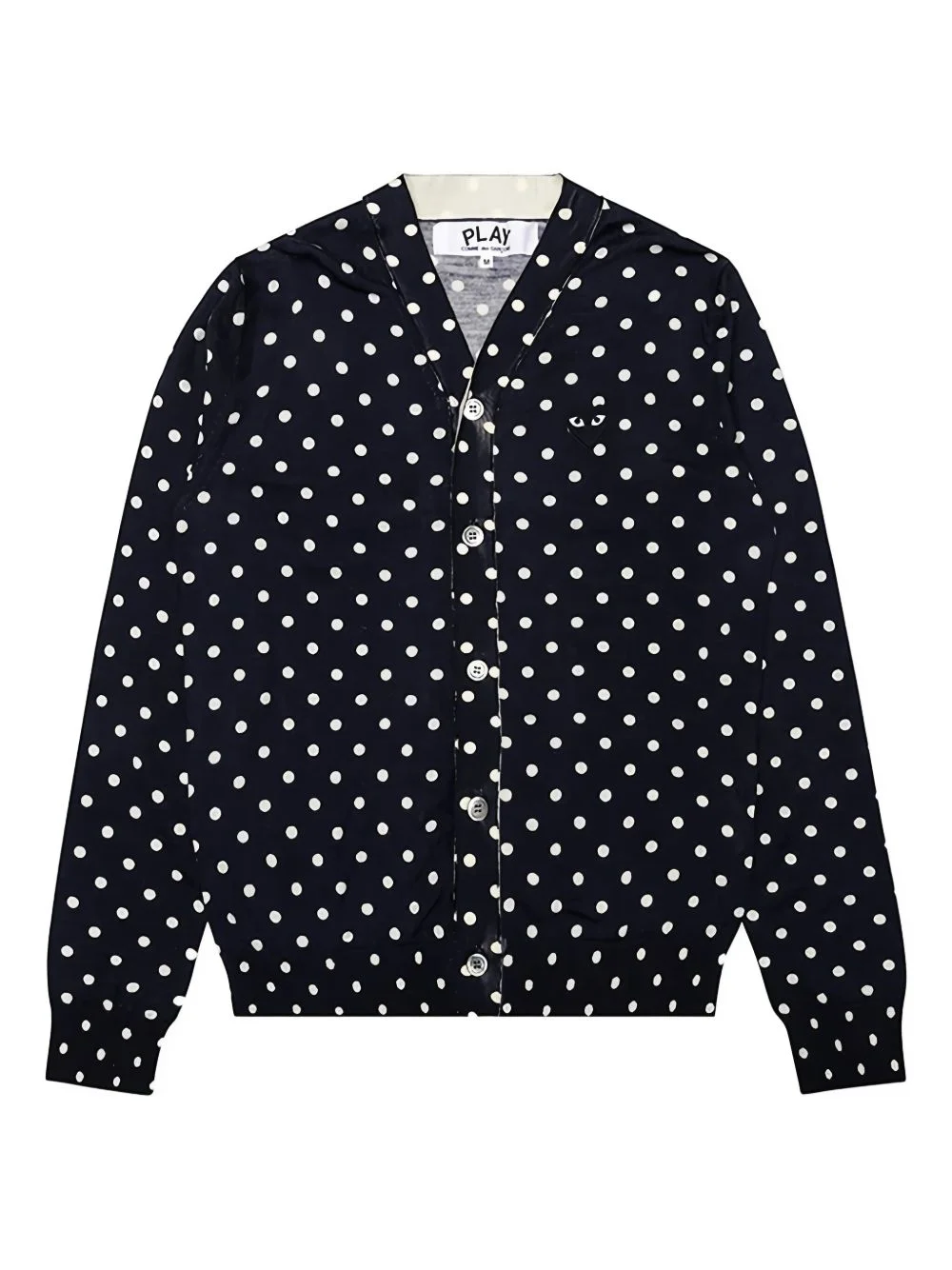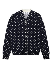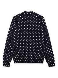 polka dot cardigan Highlights - Navy - Wool - Polka dot print - V-neck - Long sleeves - Front button fastening Imported Composition Wool 100% SIZE & FIT Measurement CHEST 40 in(101.6 cm) LENGTH 25.98 in(66 cm) WAIST 37.99 in(96.5 cm) SLEEVE LENGTH 27.99 in(71.1 cm) Shoulder Width 14.48 in(36.8 cm) FittingInformation Designed for a relaxed fit, this piece allows for comfort and movement when worn Made from a midweight non-stretch fabric, this piece offers minimal elasticity when worn This piece fits small – take one size up