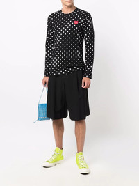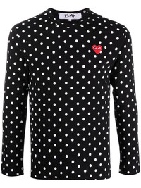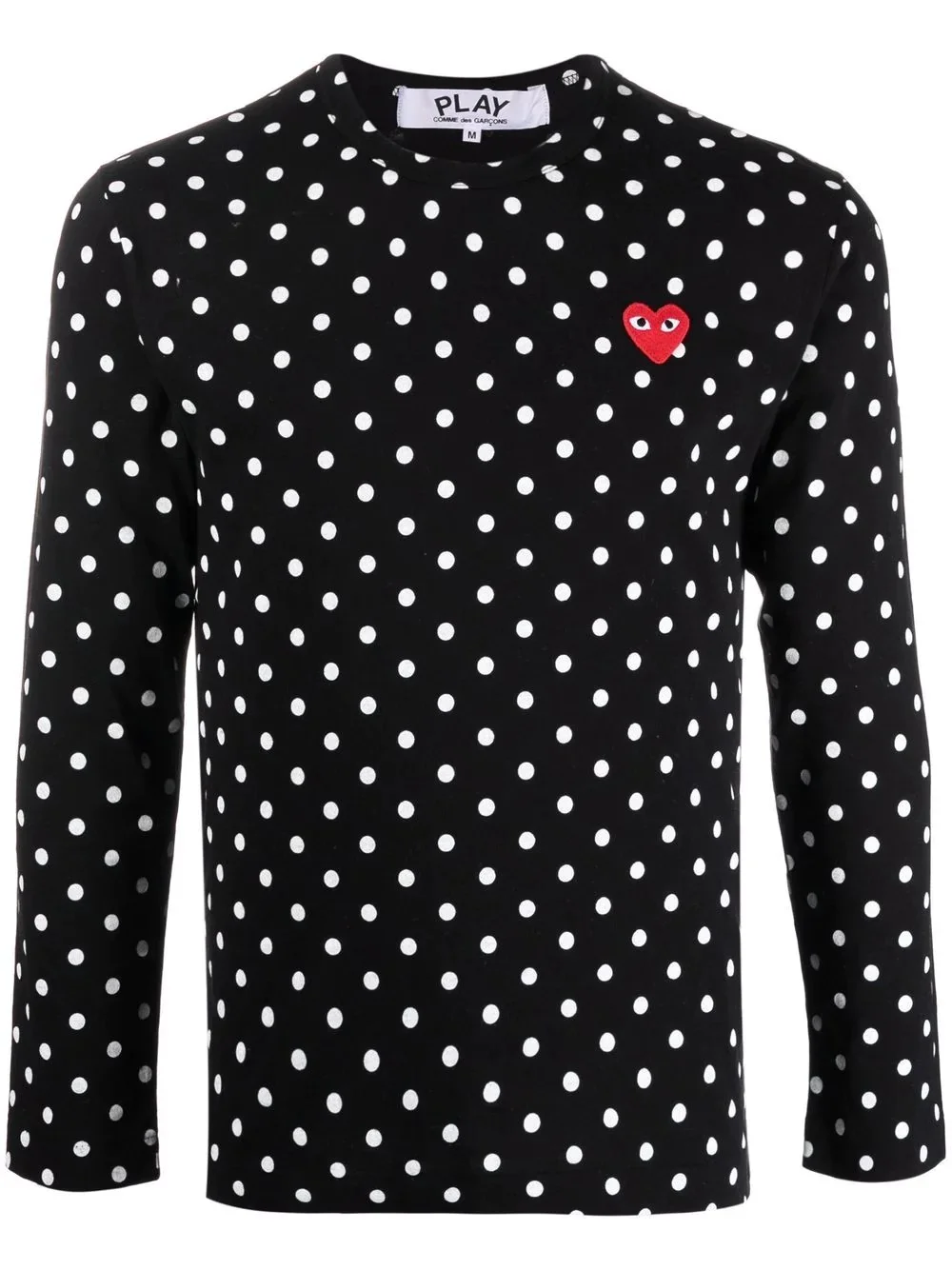 polka dot-print long-sleeved T-shirt Highlights - Black - Cotton - Jersey texture - Polka dot print - Crew neck - Long sleeves - Signature heart patch to the chest - Straight hem Imported Composition Cotton 100% SIZE & FIT Model measurements Height 6 ft 1 in(1.86 m) Bust/Chest 35.43 in(90 cm) Hips 35.43 in(90 cm) Waist 29.92 in(76 cm) Measurement BUST 34.64 in(88 cm)