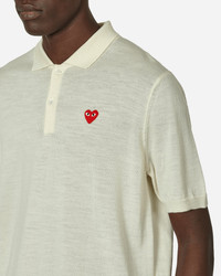 Comme des Garçons PLAY Red Heart Polo Sweater Off White The iconic Comme des Garçons PLAY Heart was created to be an evergreen staple for every season and every occasion. This timeless polo shirt is not to be missed. - 100% Wool - Regular Fit - Ribbed Collar - Two-Button Placket - Embroidered Heart at Chest - Made in Japan - Style Code: P1N094 6 SIZE & FIT Model is 6ft 2in/1.86m with 33"/85cm chest and wears size L. Measures (Size L): 48cm Shoulders, 50cm Chest, 20cm Sleeve, 69cm Length, 52cm Hem.
