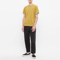 Embroidered with the iconic red heart logo at the chest, this olive green t-shirt from Comme des Garçons PLAY is a simple staple with designer Rei Kawakubo’s distinctive mark. Made in Japan, it’s cut from soft cotton for comfy everyday wear. - 100% Cotton - Ribbed Crew Neck - Embroidered Branding - Made in Japan