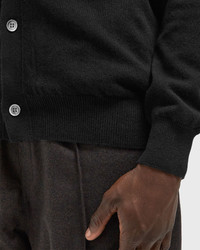 The PLAY Comme des Garcons V-Neck Cardigan has a deep V-neck and is made from 100% cotton. The iconic rhinestone heart logo completes the design. - Button placket - Ribbed cuffs and hem - Rhinestone logo Article number: AX-N806-051-1 Gender: men Color: BLACK Material: 100% Wool