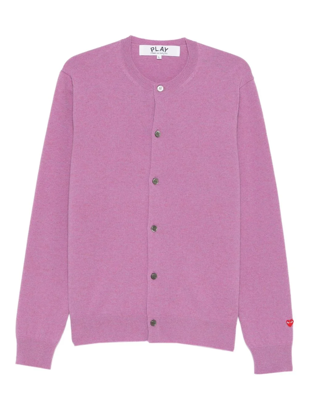 round-neck emblem cardigan Highlights - Purple - Round neck - Button fastening - Long sleeves - Emblem at the cuff Imported Composition Wool 100% Washing instructions Read Manufacturer Guidelines