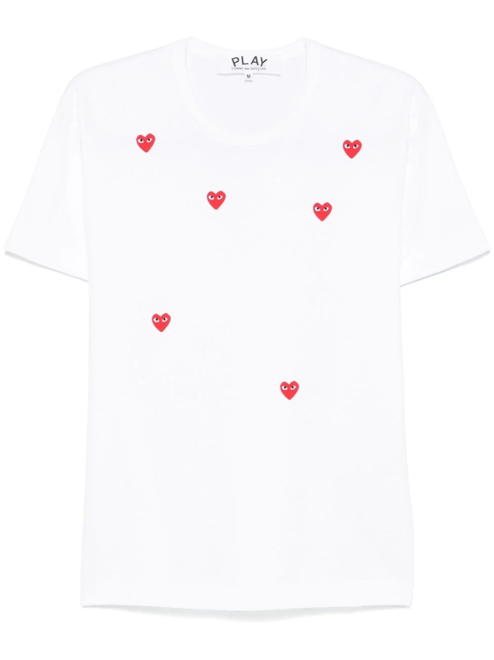 heart-print T-shirt Highlights - White - Cotton - Lightweight jersey - Signature heart print - Crew neck - Short sleeves - Straight hem - When buying this unisex item, keep in mind that it is graded in standard men's sizing. Imported Composition Cotton 100% SIZE & FIT Measurement LENGTH 29.13 in(74 cm) SLEEVE LENGTH 8.26 in(21 cm) Shoulder Width 19.68 in(50 cm) CHEST 43.3 in(110 cm) FittingInformation This piece is unisex – expect a slim fit if you usually select men's sizing; expect a looser fit if you usually select women's sizes Made from a midweight non-stretch fabric, this piece offers minimal elasticity when worn