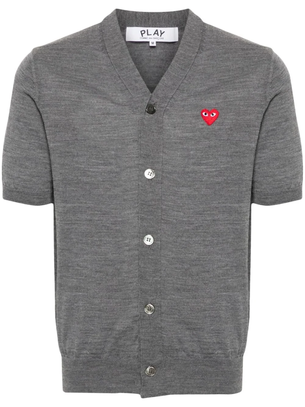 Heart-patch wool cardigan Highlights - Heather grey - Wool - Knitted construction - Signature heart patch - V-neck - Front button fastening - Short sleeves - Ribbed cuffs and hem - When buying this unisex item, keep in mind that it is graded in standard men's sizing. Imported Composition Wool 100% SIZE & FIT Model measurements Height 5 ft 9 in(1.75 m) Bust/Chest 34.64 in(88 cm) Hips 36.61 in(93 cm) Waist 26.37 in(67 cm) FittingInformation This unisex piece is designed for a relaxed fit whether you usually select women's or men's sizes The ribbed hem offers a close, comfortable fit Made with a lightweight knit, this piece offers some stretch Washing instructions Dry Clean Only