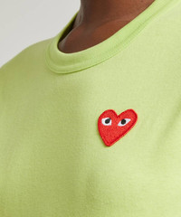 Editor's Notes Comme des Garçons PLAY’s instantly recognisable, heart logo is printed at the chest of this cotton t-shirt . Comme des Garçons PLAY creates well-tailored wardrobe basics – often the brand’s ubiquitous heart-with-eyes logo patch can be spotted peeping from the piece. This short-sleeve t-shirt is cut from cotton in a crew-neck style. The heart logo appears at the chest - pair with rolled-up chinos and white sneakers. Features Short-sleeve t-shirt Crew-neck Heart logo at chest Relaxed fit SIZE & FIT Model is 180cm/5'11"; Chest: 79cm; Waist: 62cm; Hip: 89cm and wears size S Composition & Care 100% Cotton Hand wash or dry clean only About Comme des Garçons Play Instantly recognisable the world over, Comme des Garçons PLAY’s red heart-with-eyes logo was created by Polish artist Filip Pagowski. PLAY launched in 2002 and is designed by Comme des Garçons founder Rei Kawakubo. Snubbing traditional fashion seasons, the label produces playful, often logo-adorned ready-to-wear, alongside sought-after collaborations with other artists and creatives.