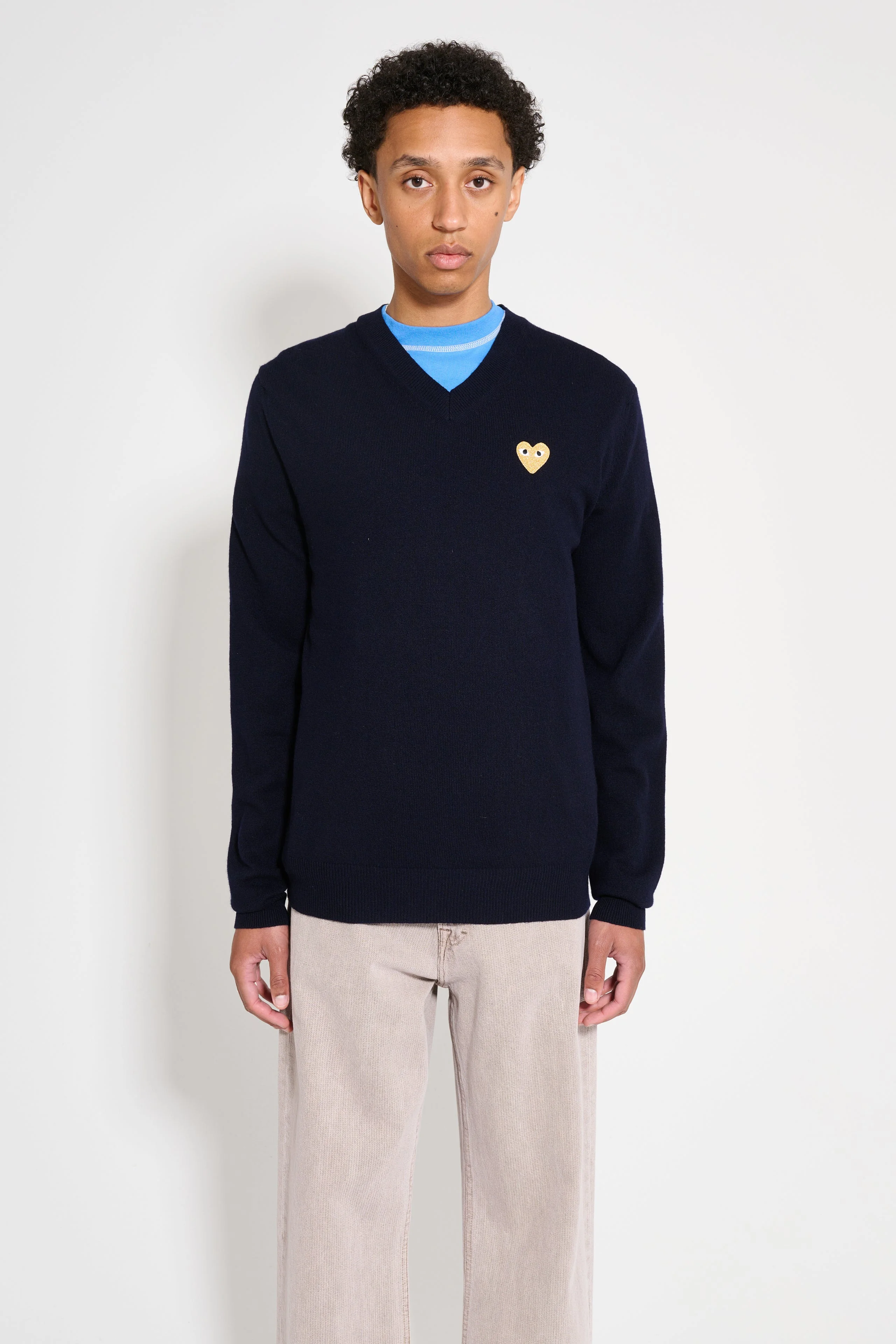 COMME DES GARÇONS PLAY SMALL HEART KNITTED V-NECK PULLOVER NAVY