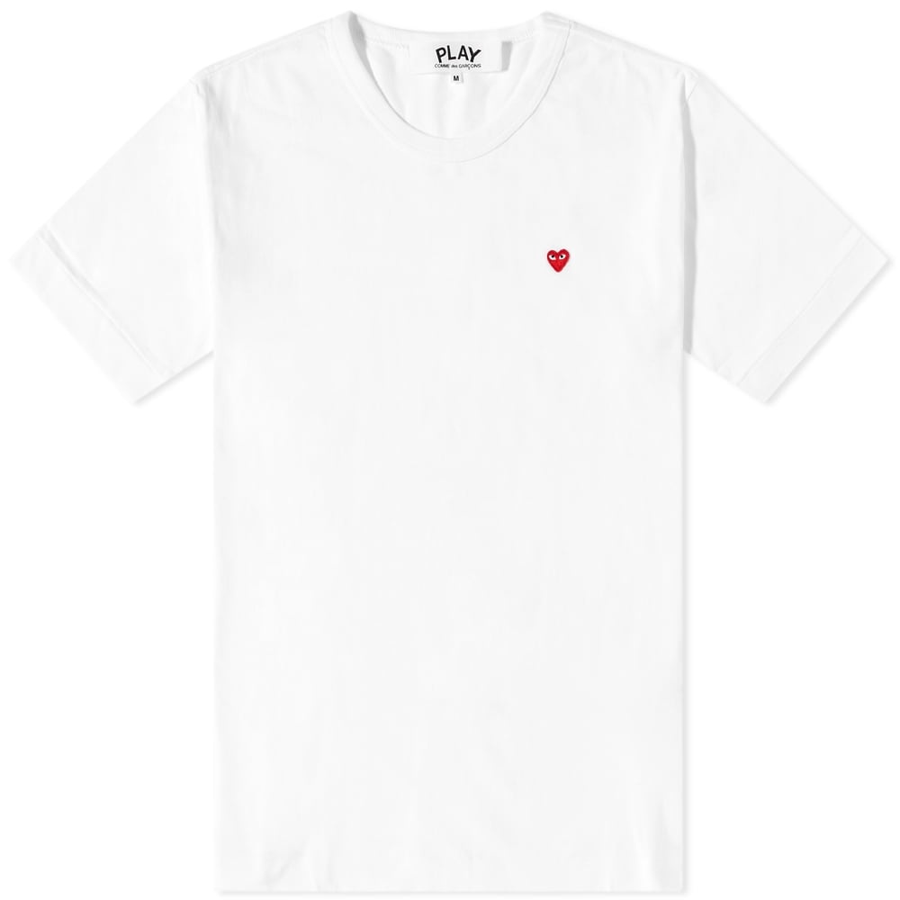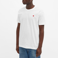 Comme des Garçons PLAY keeps things refined with this classic white tee. Made in Japan from soft cotton jersey, it features a smaller version of the iconic red heart logo for a signature sign-off. - 100% Cotton - Ribbed Crewneck - Appliqué Branding - Made in Japan