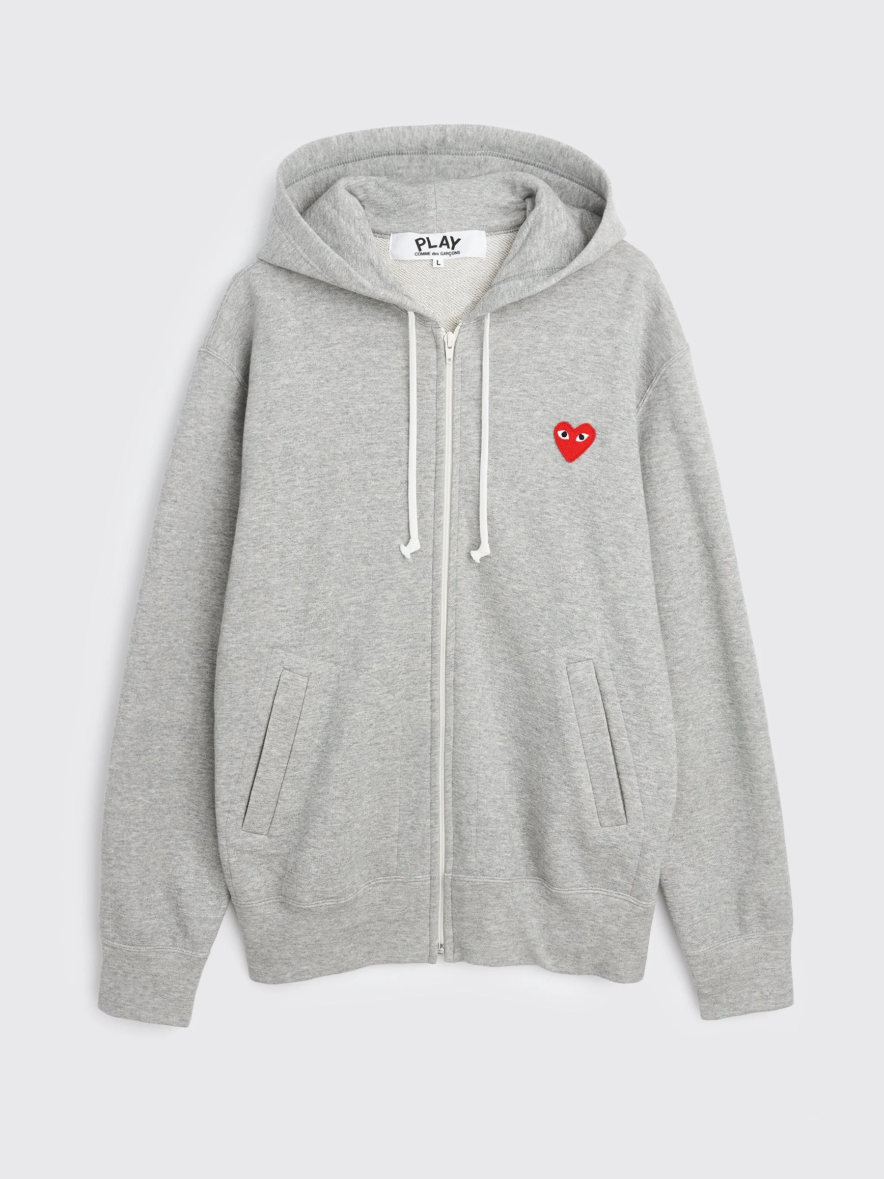 COMME DES GARÇONS PLAY SMALL HEART ZIP HOODED SWEATSHIRT GREY