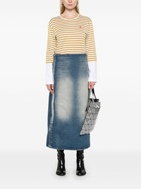 Mini Heart-patch T-shirt Highlights - Mustard yellow/white - Cotton - Lightweight jersey - Mini heart patch at the chest - Horizontal stripe pattern - Crew neck - Long sleeves - Straight hem - When buying this unisex item, keep in mind that it is graded in standard men's sizing. Imported Composition Cotton 100% SIZE & FIT FittingInformation This piece is unisex – expect a slim fit if you usually select men's sizing; expect a looser fit if you usually select women's sizes Made from a midweight non-stretch fabric, this piece offers minimal elasticity when worn