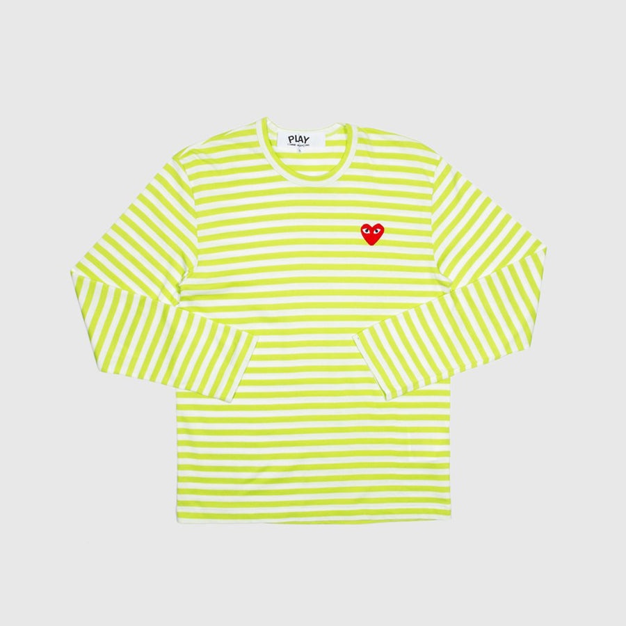 - AZ-T278-051LME - Lime - 100% Cotton - Made in Japan - Long-Sleeved Striped T-Shirt - Heart Applique - Crewneck Collar - Pastelle Colored
