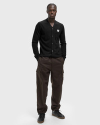 This Comme des Garcons Play sweater is made from soft cotton knit and features a classic cut and deep V-neck. The iconic little heart emblazoned on the chest gives the sweater its signature PLAY look. - Button placket - Made in Japan - Embroidered heart Article number: AX-N062-051-1 Gender: men Color: BLACK Material: 100% Wool