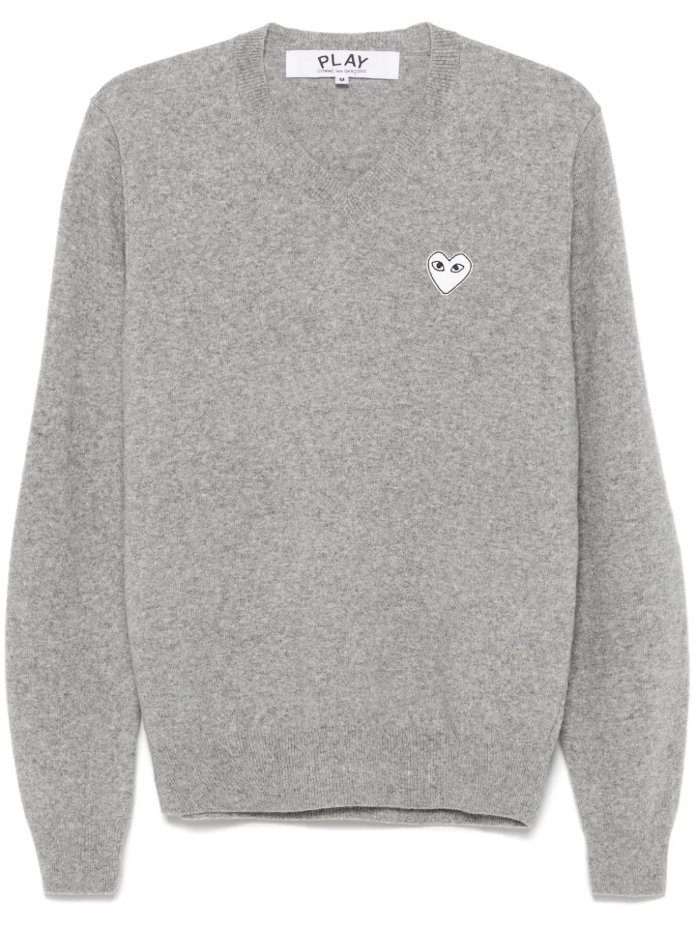 v-neck pullover with white heart Highlights - Light grey - Wool - Fine knit - Melange effect - Ribbed v-neck - Long sleeves - Ribbed cuffs - Signature heart patch - Ribbed hem - When buying this unisex item, keep in mind that it is graded in standard men's sizing. Imported Composition Wool 100% SIZE & FIT Model measurements Height 5 ft 11 in(1.8 m) Bust/Chest 32.67 in(83 cm) Hips 36.22 in(92 cm) Waist 24.4 in(62 cm) Measurement LENGTH 25.19 in(64 cm) SLEEVE LENGTH 24.8 in(63 cm) Shoulder Width 15.35 in(39 cm) FittingInformation Designed for a relaxed fit, this piece allows for comfort and movement when worn Made from a midweight fabric This piece fits small – take one size up