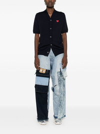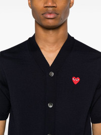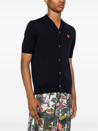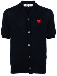 V-neck wool cardigan Highlights - Midnight blue - Wool - Knitted construction - Signature heart patch - Ribbed v-neck - Front button fastening - Short sleeves - Ribbed cuffs and hem - When buying this unisex item, keep in mind that it is graded in standard men's sizing. Imported Composition Wool 100% SIZE & FIT Model measurements Height 5 ft 11 in(1.8 m) Bust/Chest 32.67 in(83 cm) Hips 36.22 in(92 cm) Waist 24.4 in(62 cm) FittingInformation This unisex piece is designed for a relaxed fit whether you usually select women's or men's sizes The ribbed hem offers a close, comfortable fit Made with a midweight knit, this piece offers some stretch