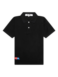 x Invader pixel-heart polo shirt Highlights - Black - Pixelated space invader and heart emblem - Short sleeves - Two-button placket Made in United States Composition Cotton 80%, Polyester 20% Washing instructions Read Manufacturer Guidelines